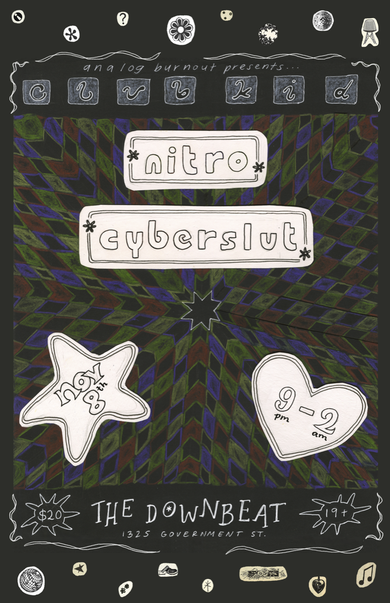 A night of 80s and 90s house and techno with cyberslut and nitro.